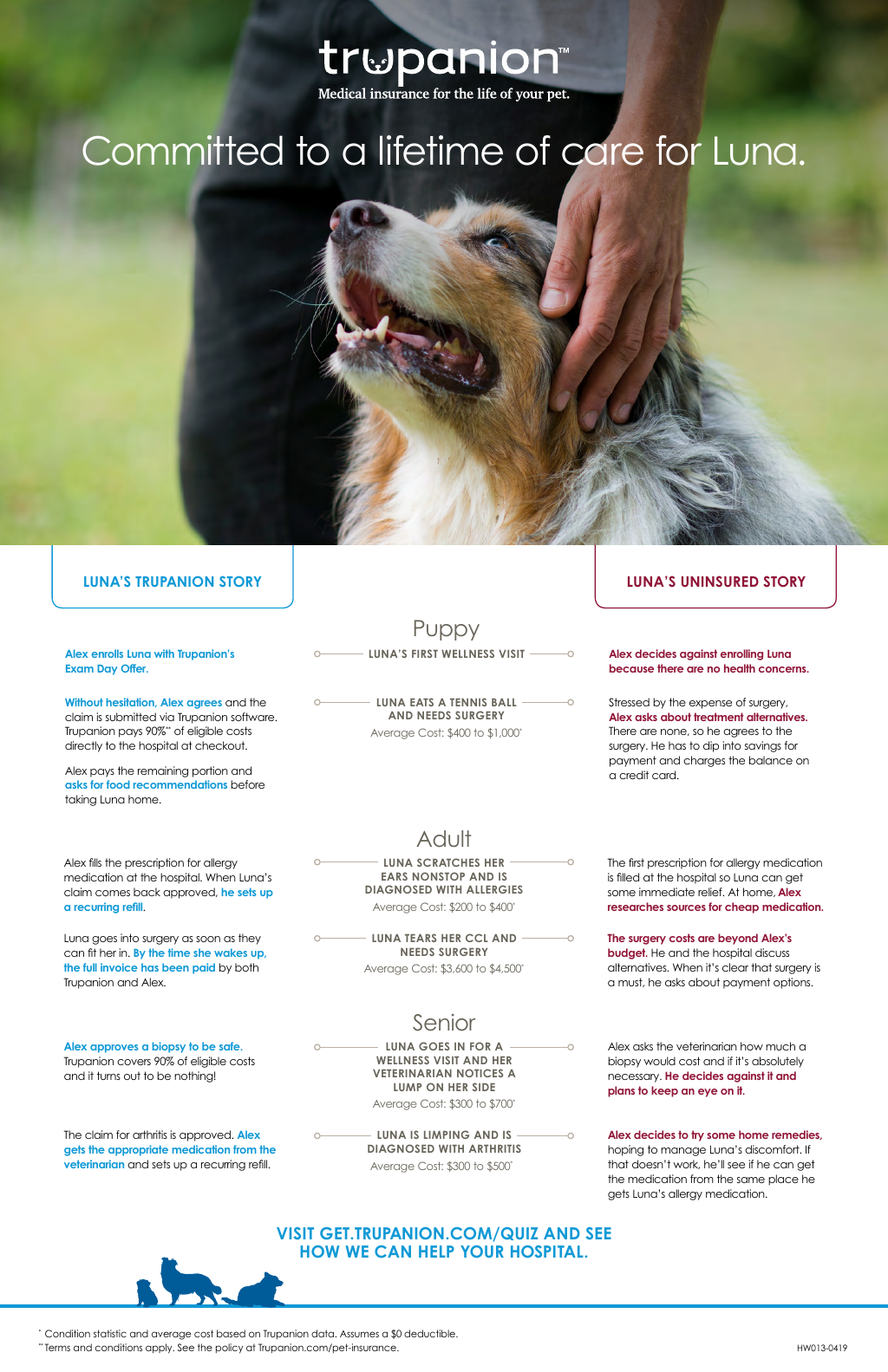 Trupanion Plans - Trupanion Medical Insurance For Your Pet Academy Pet Hospital - Trupanion is one of the providers that can pay your veterinarian directly—if your vet accepts it.. She says, "vaccines, spays/neuters, etc. Diabetes, thyroid disease, heart diseases, allergies, elbow and hip dysplasia, upper respiratory infections, nervous system issues, and liver diseases, etc. Trupanion pet insurance has one simple plan that covers 90% of veterinary costs with no payout limits. Because your pet deserves nothing less than the best. Our veterinary pet insurance can even pay the bill in minutes so you aren't waiting for a reimbursement check.